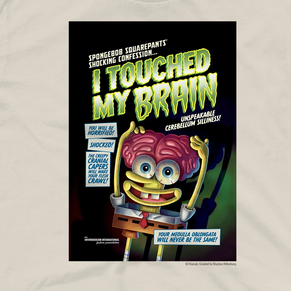 Shave me down, make me round! Creepy enough to scare even the Flying Dutchman, this SpongeBob I Touched My Brain Short Sleeve T-Shirt is sure to be a fang-tastic addition to your wardrobe! From Jellyfish Fields to the Krusty Krab, this tee will become your favorite look.