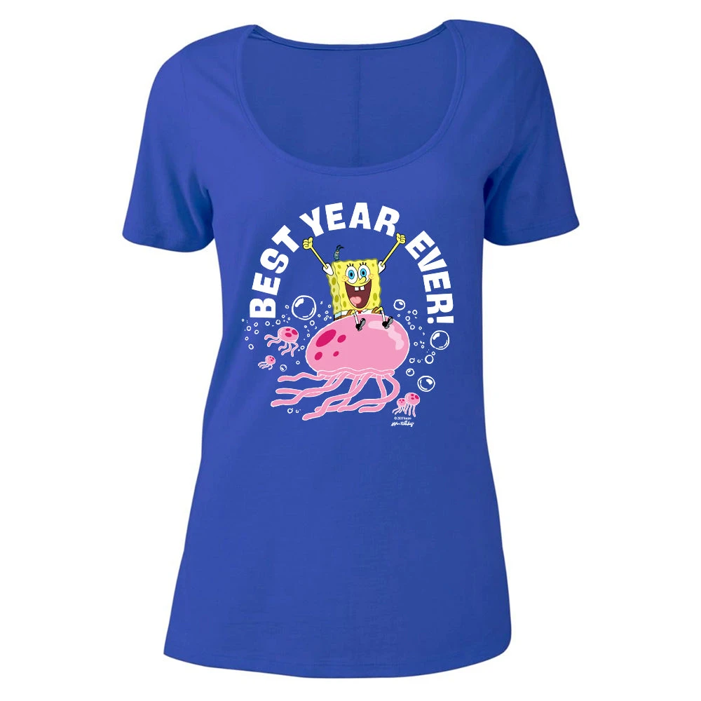 Order up! Have a second, third or even fourth serving of all your favorite SpongeBob SquarePants moments and grab one of these SpongeBob SquarePants Best Year Ever Jellyfish women’s tees! Featuring the Krusty Krab’s #1 fry cook on the front and the official 20th Anniversary logo on the back, this super comfortable t-shirt comes in two color choices so you can choose your favorite or even add one of each to your wardrobe!
