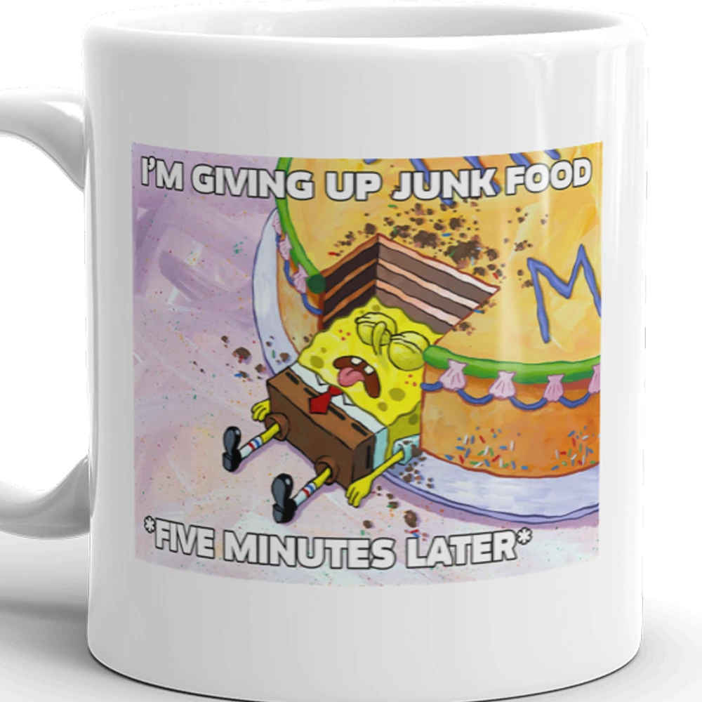 We, too, have given up on junk food…for like, five minutes. It’s the thought that counts though, right? Show the world that you at least attempted to give up junk food by sipping your favorite beverages from this SpongeBob Five Minutes Later Mug.
