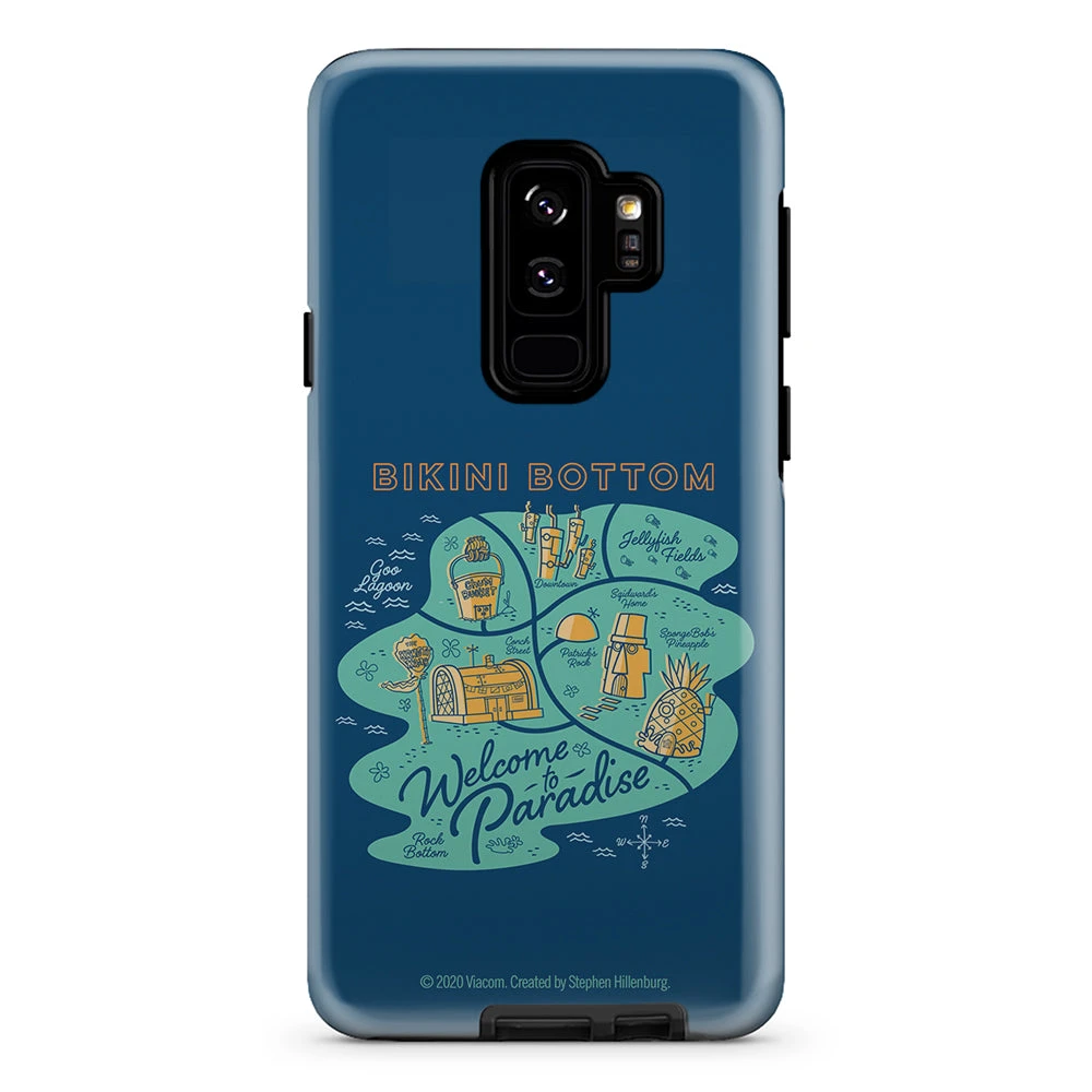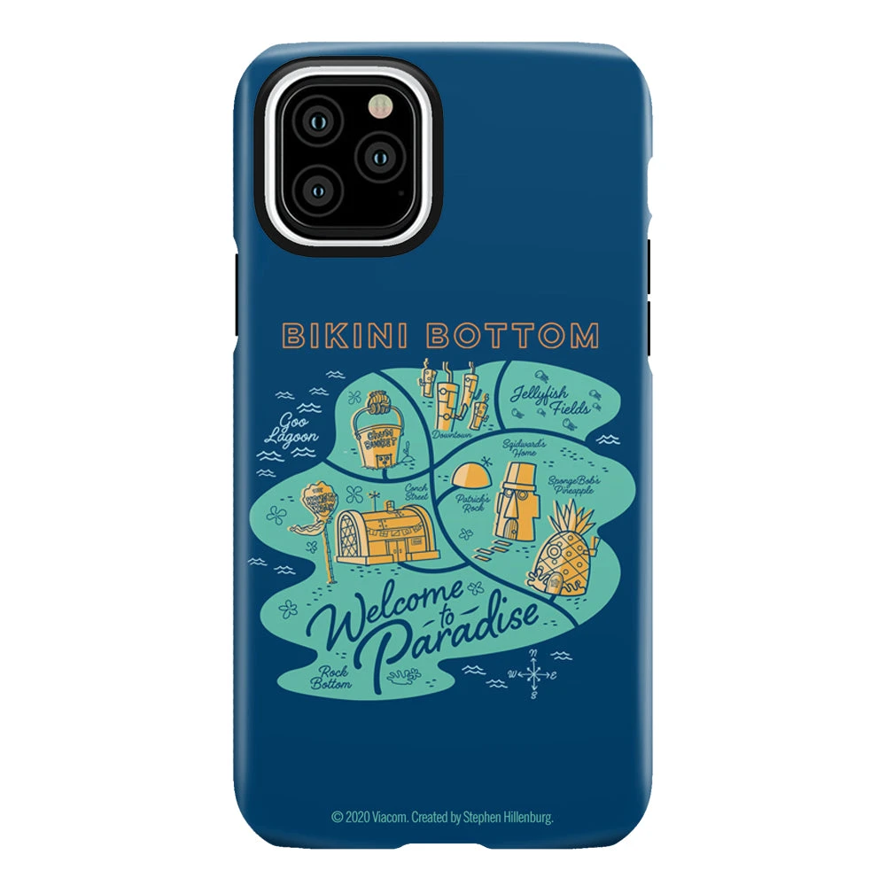 Say ~shell-o~ to your new favorite phone case! Featuring a stylized map of Bikini Bottom complete with the Krusty Krab, SpongeBob’s pineapple home, Goo Lagoon, and more, this durable SpongeBob SquarePants Welcome to Paradise Phone Case lets you take a little bit of paradise with you everywhere you go.