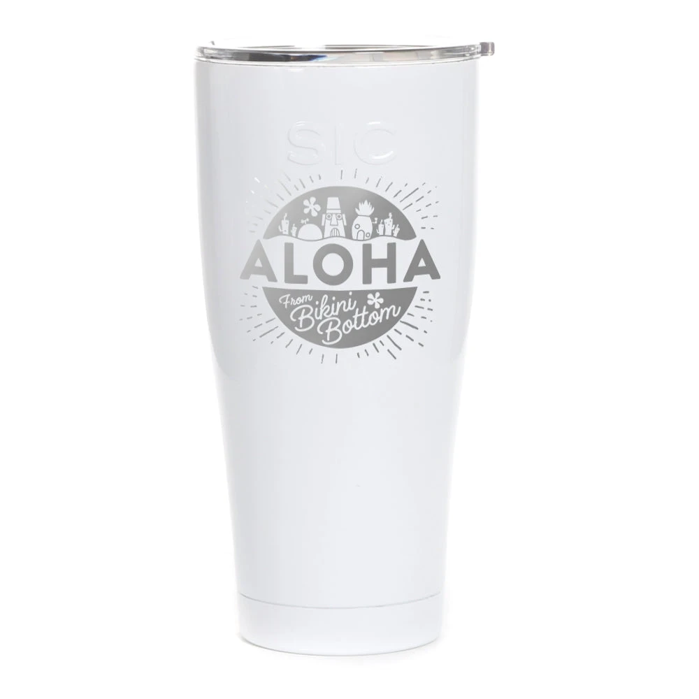 You’ll definitely need to take a water break after singing the Bikini Bottom National Anthem! Featuring the iconic Bikini Bottom skyline on either side of SpongeBob, Patrick, and Squidward’s houses, this SpongeBob SquarePants Aloha Laser Engraved SIC Tumbler lets you stay hydrated and represent Bikini Bottom everywhere you go.