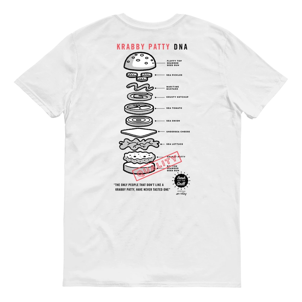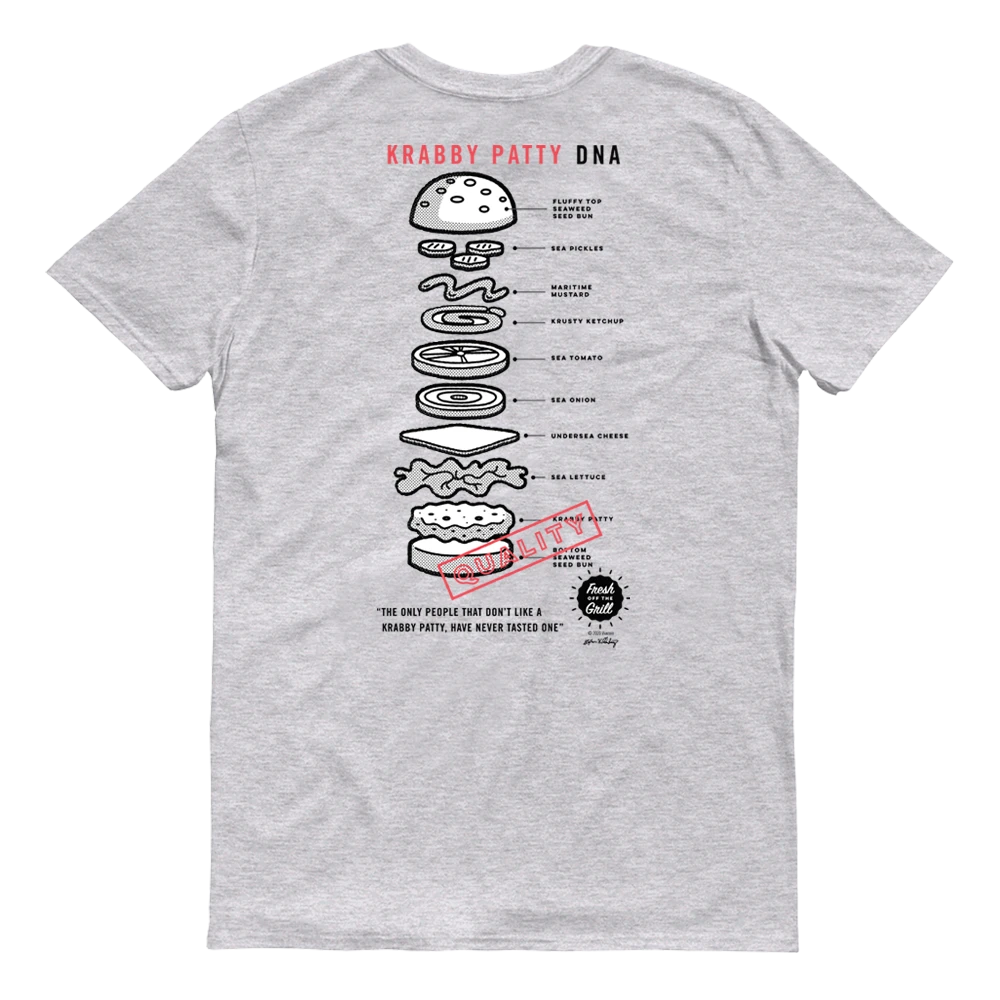 Are you the biggest Krusty Krab fan on land and under the sea? Make it known by adding this The Krusty Krab DNA Adult Short Sleeve T-Shirt to your wardrobe! Showcasing the DNA of a Krabby Patty, this tee is a must-have for landlubbers and sea critters who cannot get enough of this delicious sandwich.