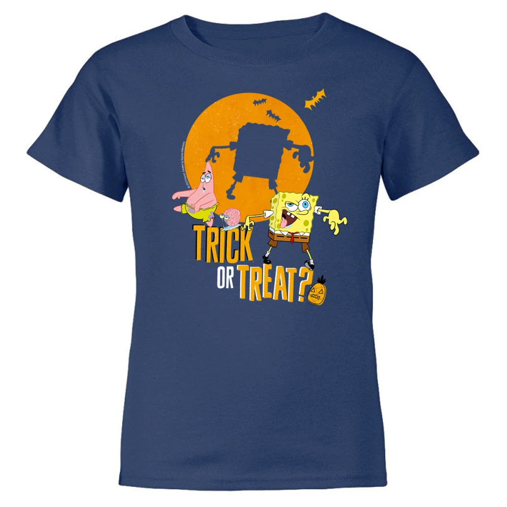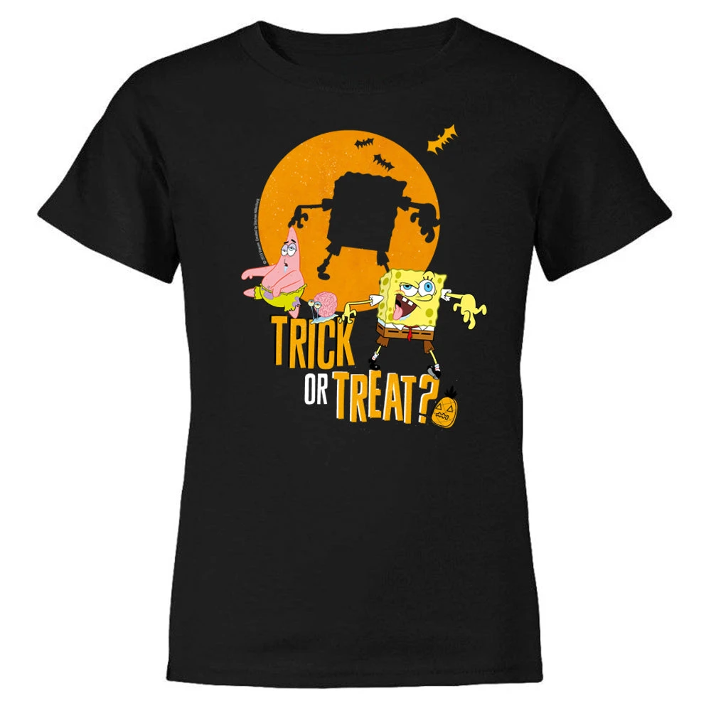 This SpongeBob and Patrick Trick-Or-Treat Kids Short Sleeve T-Shirt is something to scream about! Whether you are attending the Krusty Krab’s Halloween party or picking out the perfect pumpkin to carve, this t-shirt is a great look for any spooky occasion.