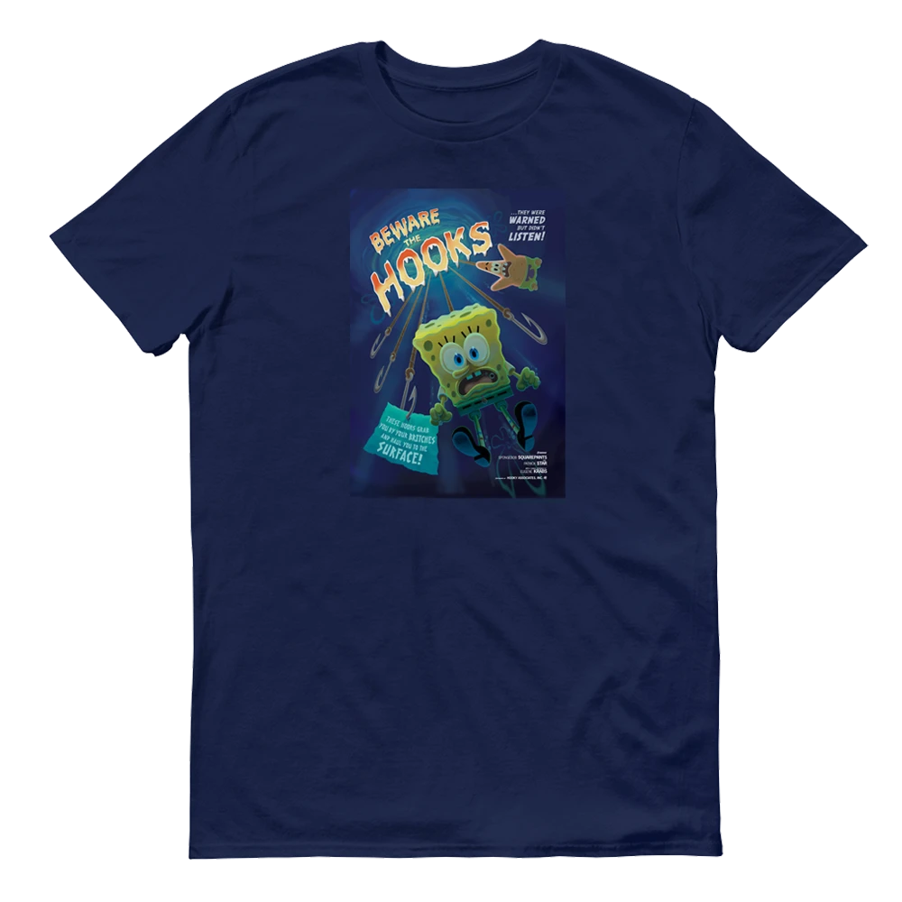 This SpongeBob Beware the Hooks Adult Short Sleeve T-Shirt will remind you to watch out for those hooks with each wear! Available in multiple colors, this hauntingly-comfy tee is perfect to wear all throughout the Halloween season.
