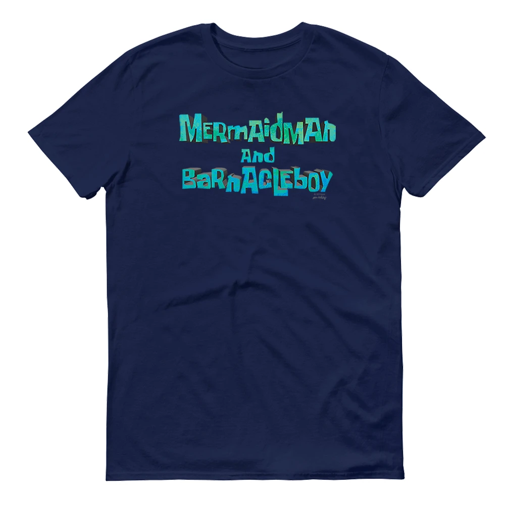 Available in multiple colors and featuring the names of Mermaidman and Barnacleboy across the chest, this SpongeBob SquarePants Mermaidman and Barnacleboy 3D Adult Short Sleeve T-Shirt is a sleek addition to your wardrobe. Wear this tee arouuund tooown to show off how much you love this crime-fighting duo.