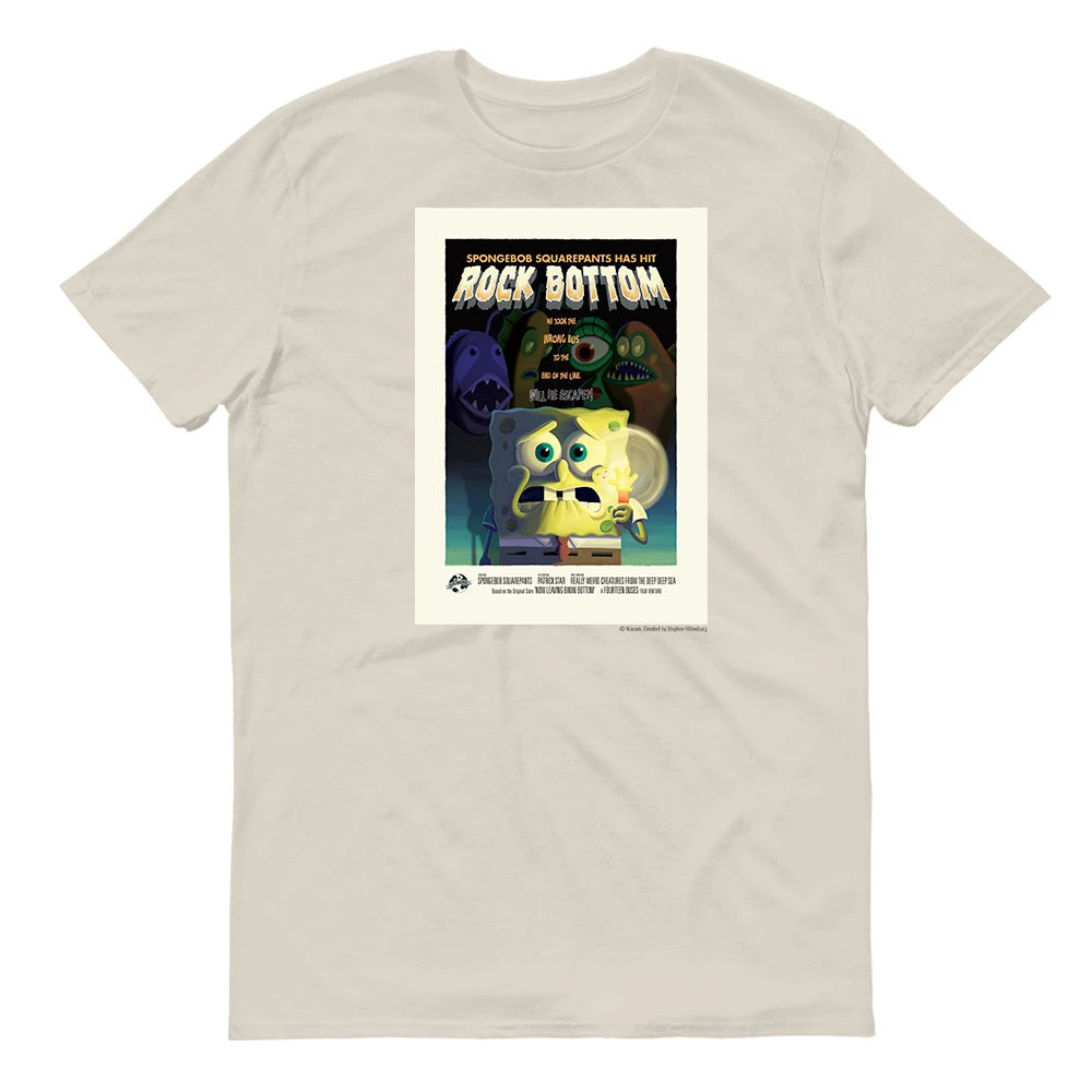 “This is not your average everyday darkness. This is…advanced darkness. This SpongeBob Rock Bottom Short Sleeve T-Shirt is the perfect way to represent things that go bump in the night. You are sure to have a good time when wearing this comfy tee!