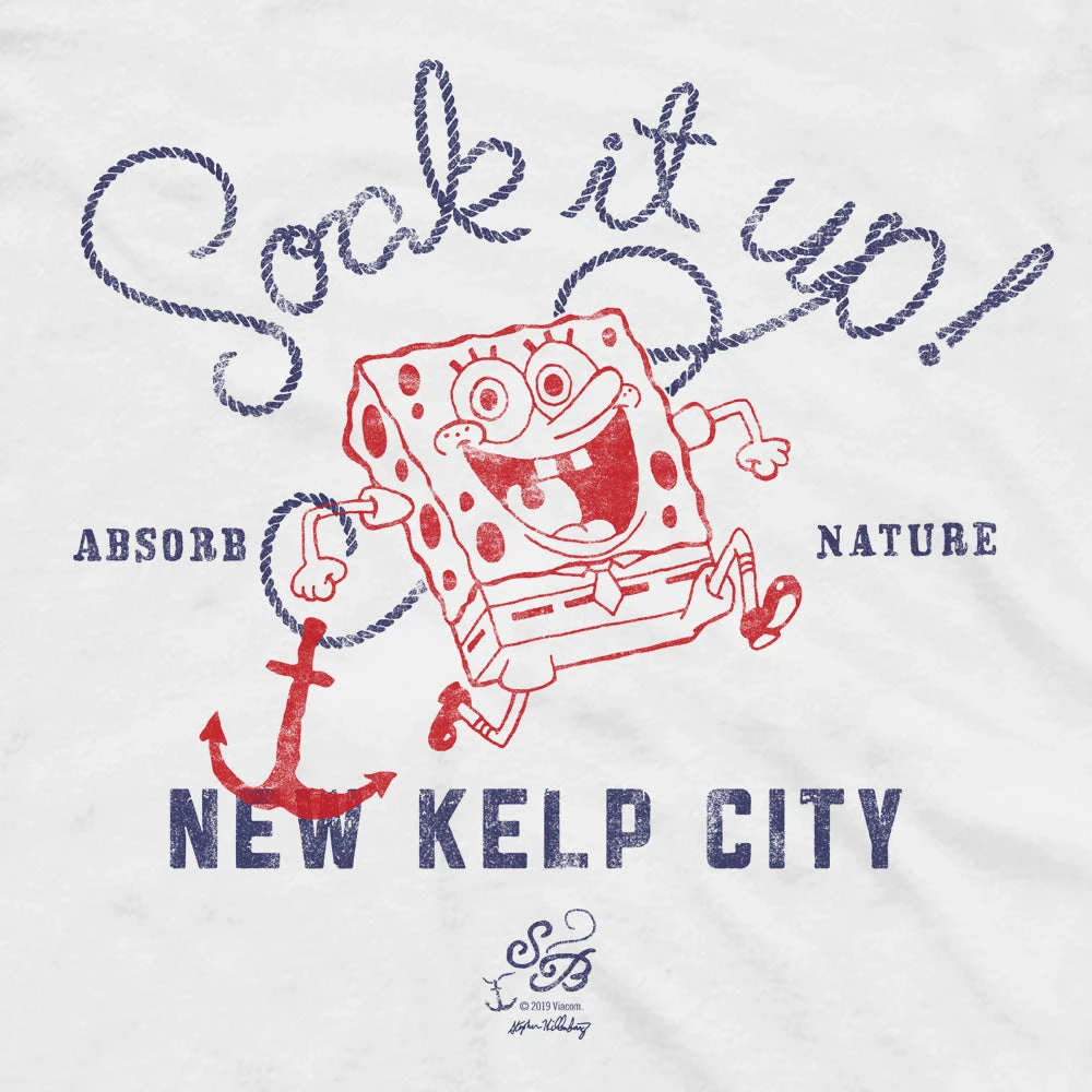 SpongeBob might not have remembered who he was after tripping on a piece of kelp, but who could ever forget his stint as mayor in New Kelp City? Soak up all of the fun times SpongeBob has both in and out of Bikini Bottom with this SpongeBob SquarePants Soak It Up Men’s Tee!
