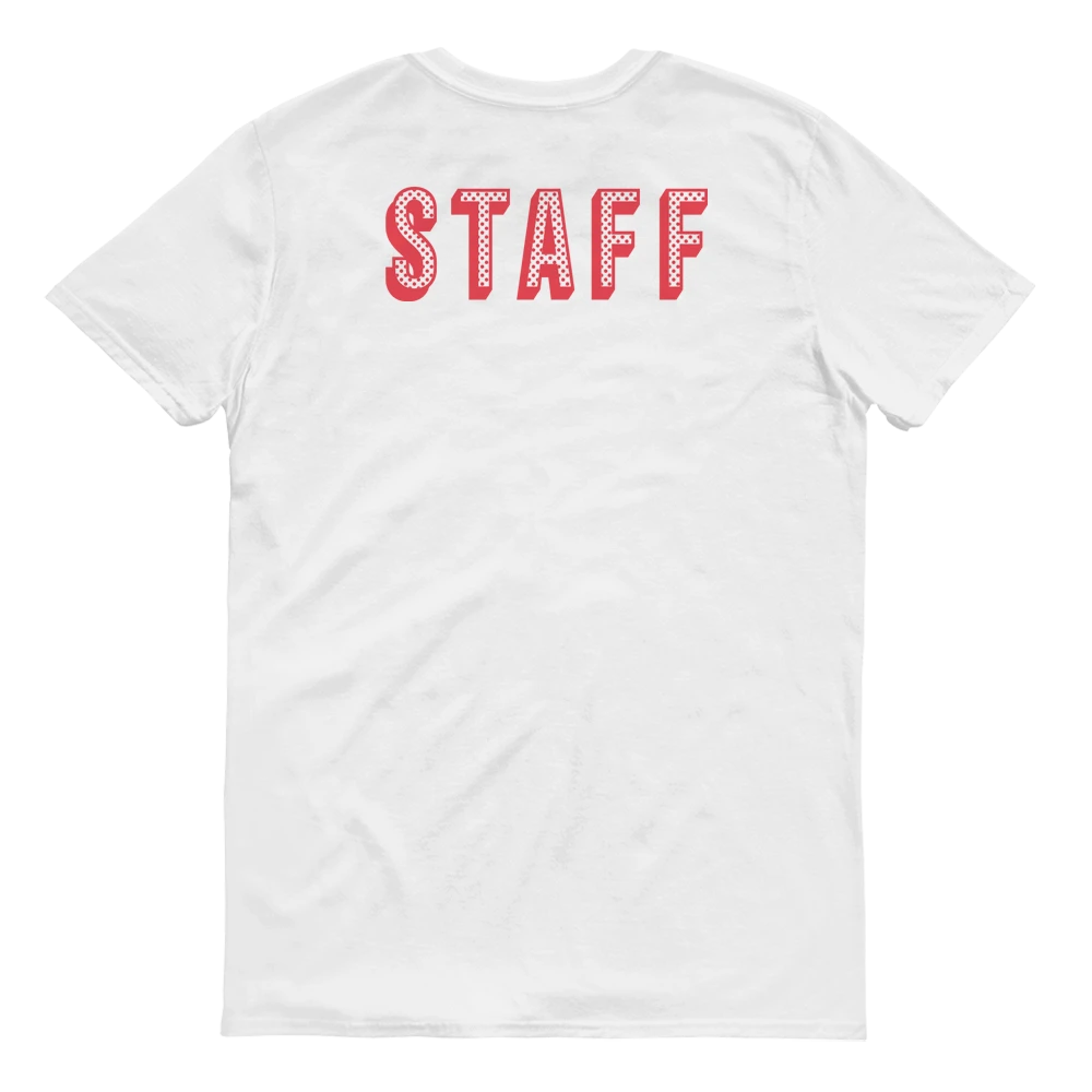 Get ready for your first shift in style with this comfy The Krusty Krab Staff Adult Short Sleeve T-Shirt. Featuring the Krusty Krab on the upper left chest and “STAFF” on the back, this short-sleeve tee will leave you saying, “I’m ready, I’m ready, I’m ready…to serve up smiles!”