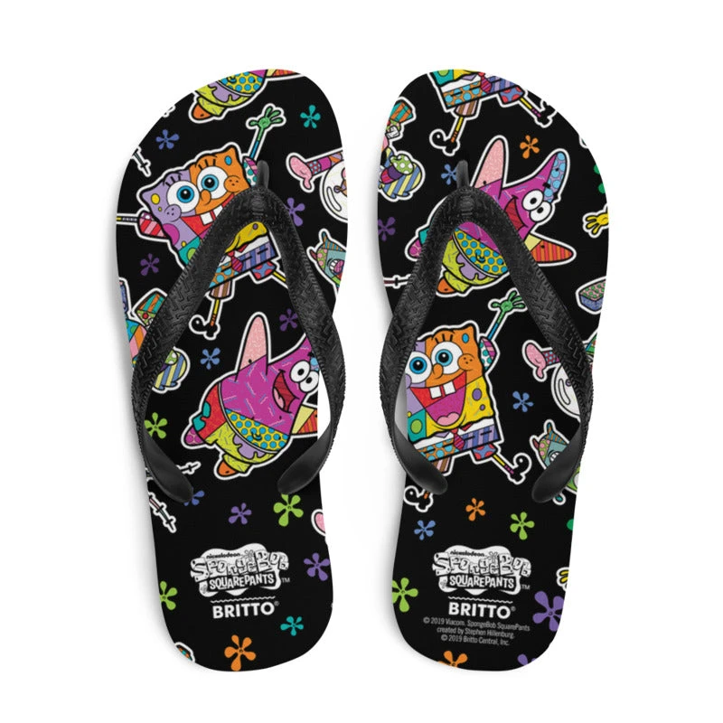 Look what we reeled in! Perfect for taking a stroll through Bikini Bottom, these stylish SpongeBob SquarePants Britto Flip Flops are ~shore~ to make a splash each time you wear them. Designed by Miami pop artist Romero Britto, these flip-flops are a stylish way to take SpongeBob, Patrick, Sandy, and Plankton with you arouuund tooown.