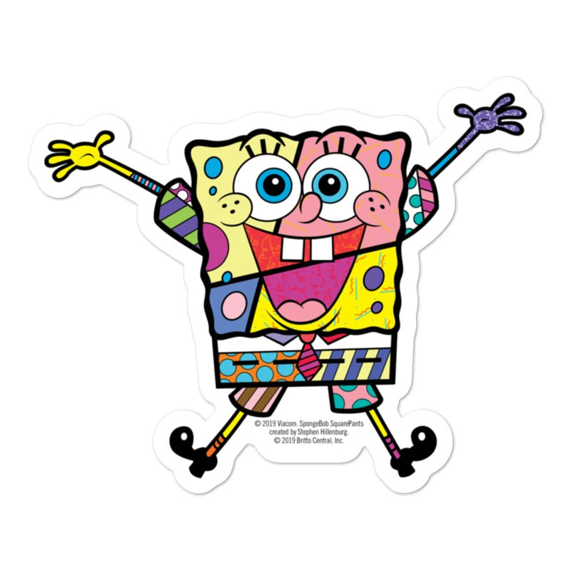Are you ready to get spongy? This SpongeBob SquarePants Britto Sticker makes the perfect addition to your laptop, water bottle, phone case and more! Designed by Miami pop artist Romero Britto, this sticker lets you celebrate the nautical nonsense of Bikini Bottom’s favorite fry cook anywhere you go.