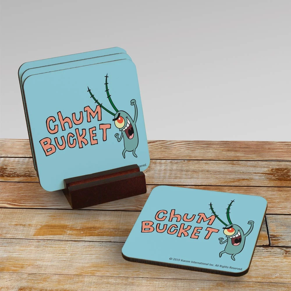 You know what goes great with a yummy Chum Bucket Chum Stick? Your favorite beverage! Whether it’s a Kelp Shake or an ice cold glass of water, you can sip your favorite beverage while protecting your tables from condensation rings with these Chum Bucket Coasters – Set of 4!