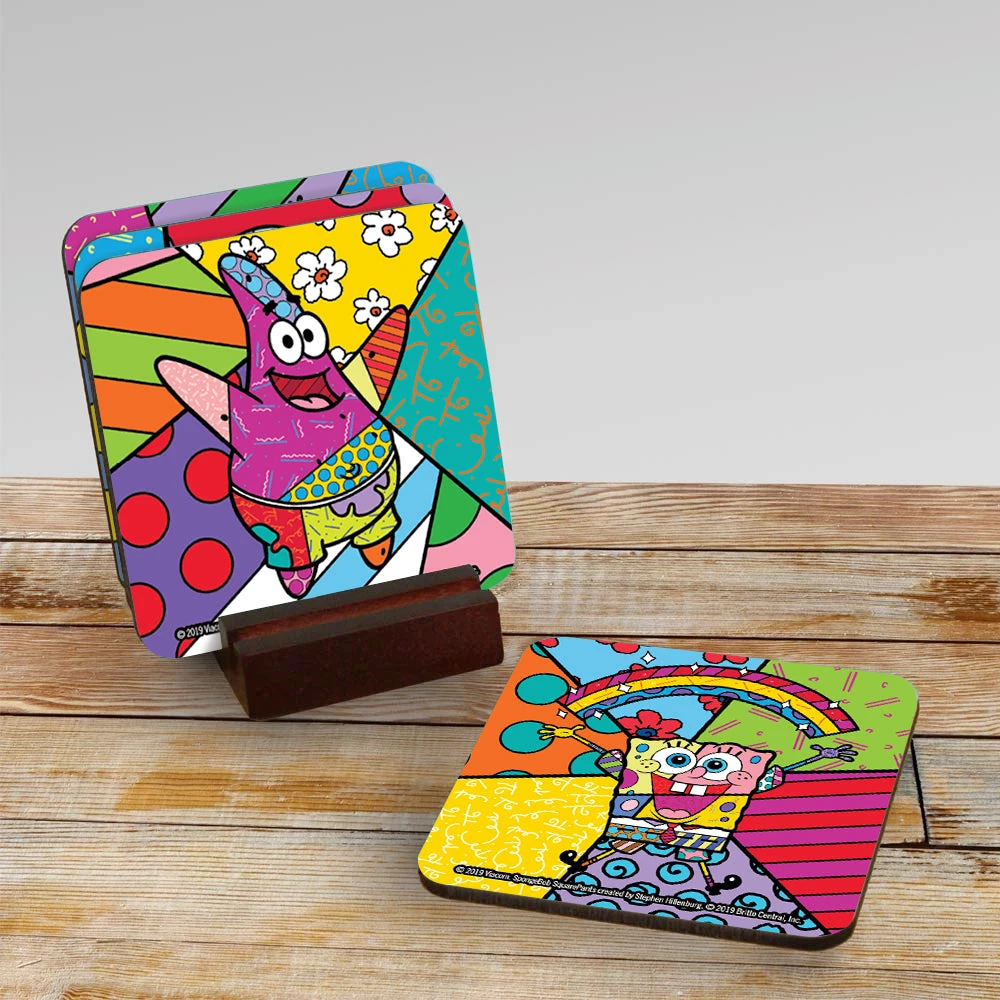 Water…THEY NEEEED IT! Keep your surfaces dry by letting SpongeBob, Patrick, Squidward, and Mr. Krabs soak up the condensation from your drinks with this SpongeBob Britto Coaster Set. Designed with the spirit of SpongeBob SquarePants in mind, these vibrant Romero Britto coasters will look prettier than Pretty Patties in your home.