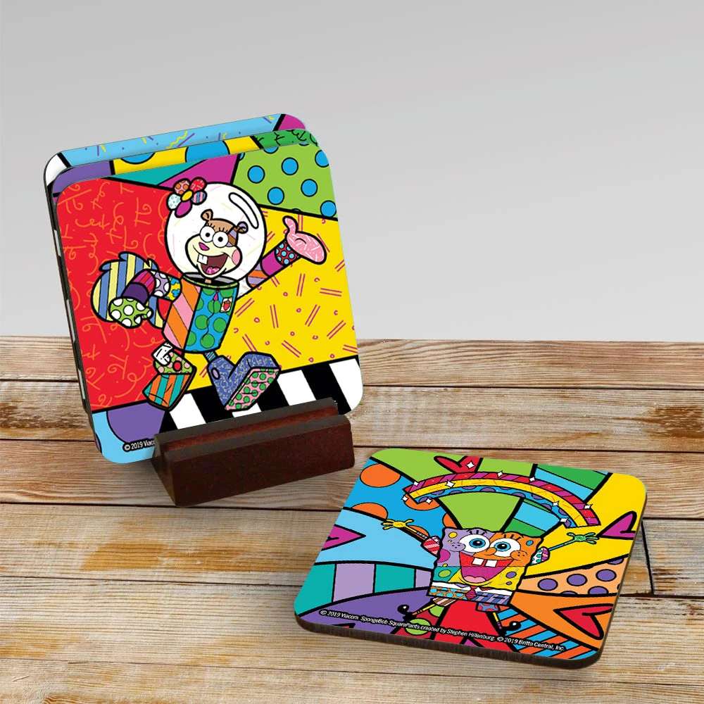 Keep the condensation of those kelp shakes off your counters with this vibrant SpongeBob Britto Coaster Set! Featuring SpongeBob, Sandy, Plankton, and Gary reimagined in the art style of pop artist Romero Britto, these coasters are sure to make a splash wherever they’re placed!