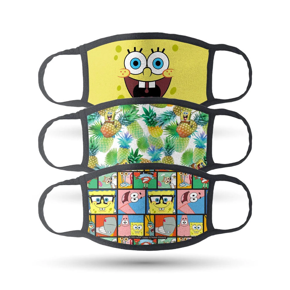 Give your essential errands a F.U.N. upgrade with this SpongeBob SquarePants Assorted Washable Face Masks – Pack of 3. Made from breathable, washable material and featuring three designs that are prettier than Pretty Patties, these face masks are a great addition to your wardrobe.
