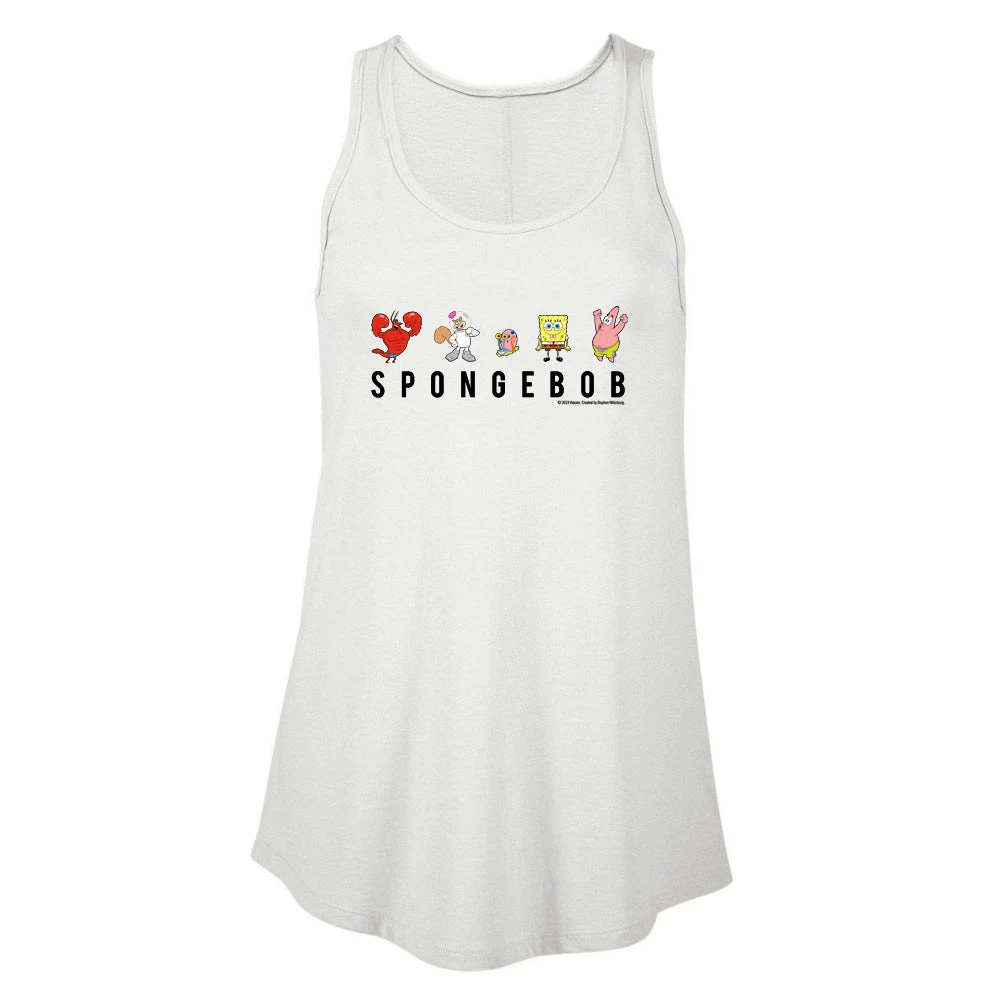 The gang’s all here! With so many great pals in Bikini Bottom, it can be hard to choose a favorite! Thank Neptune that you don’t have to! Featuring Spongebob, Larry, Sandy, Gary, and Patrick, this SpongeBob SquarePants Character Lineup Women’s Flowy Tank Top lets you show your pride for all of your favorite SpongeBob friends in style.